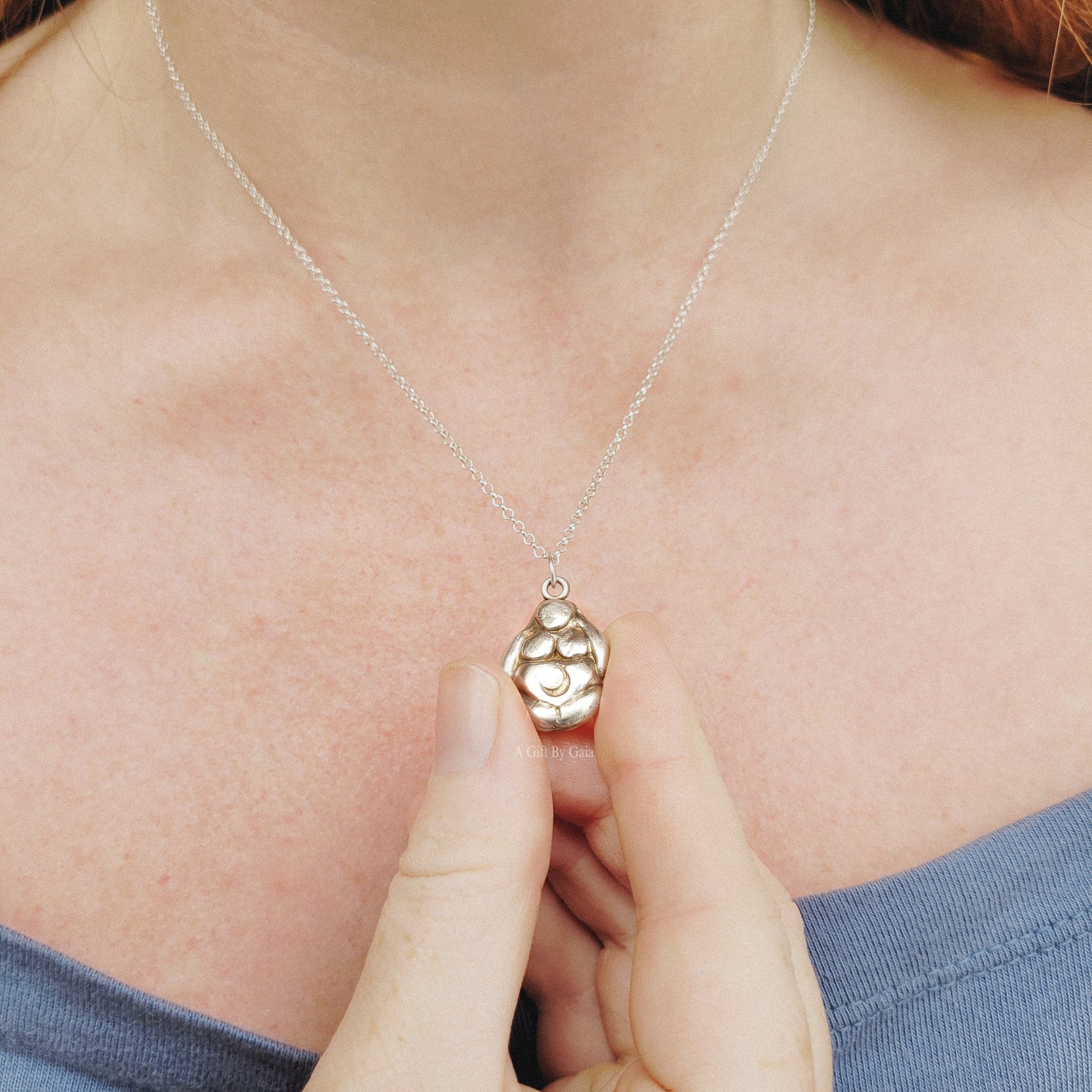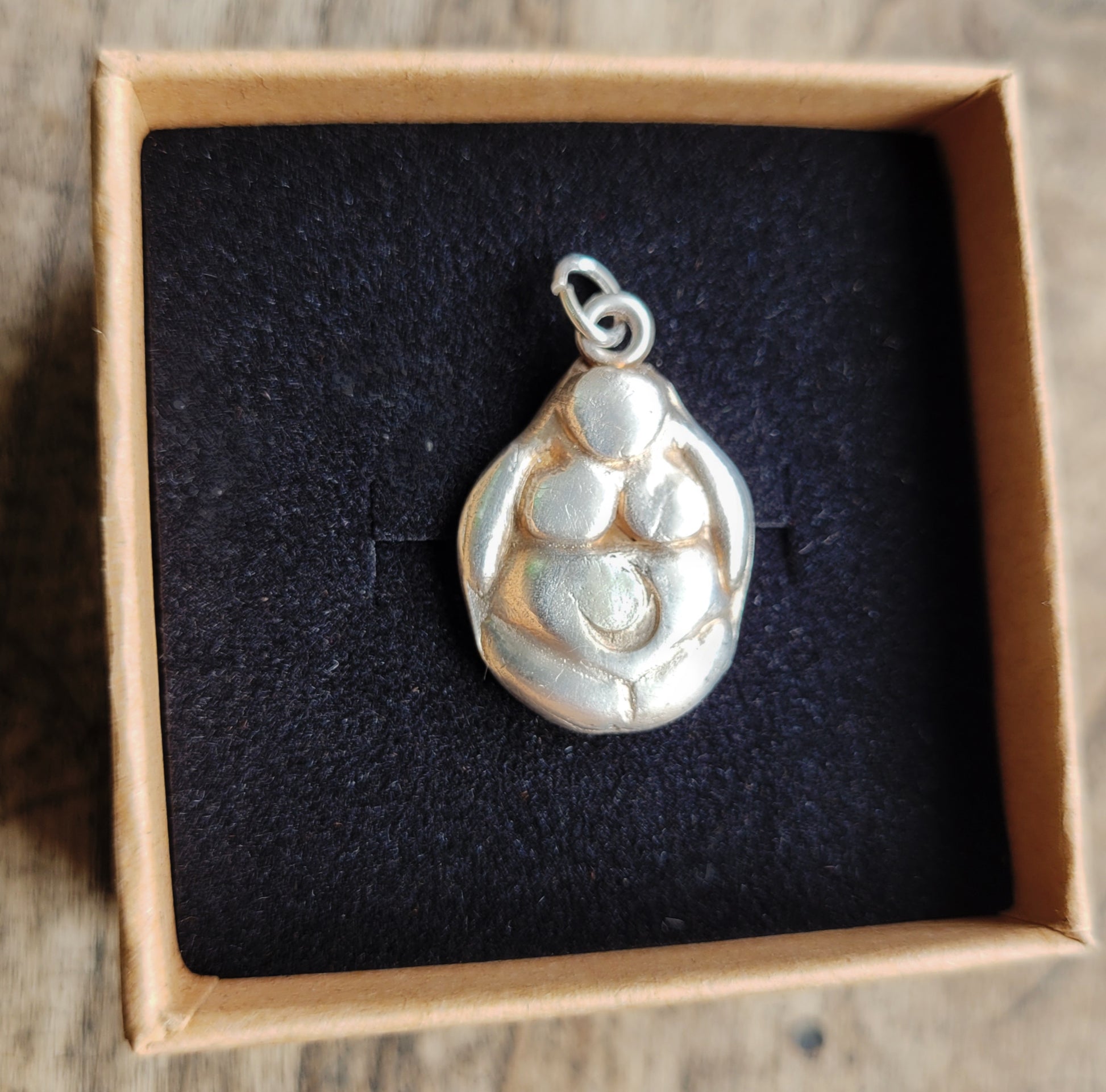 This can be, but not necessarily for everyone, a fertility pendant or celebration of motherhood. However it is important to remember that the fullness of the goddess means many things personal to you. Pure life force energy, weaving chaos with the calm, body confidence, creativity and passion for life.