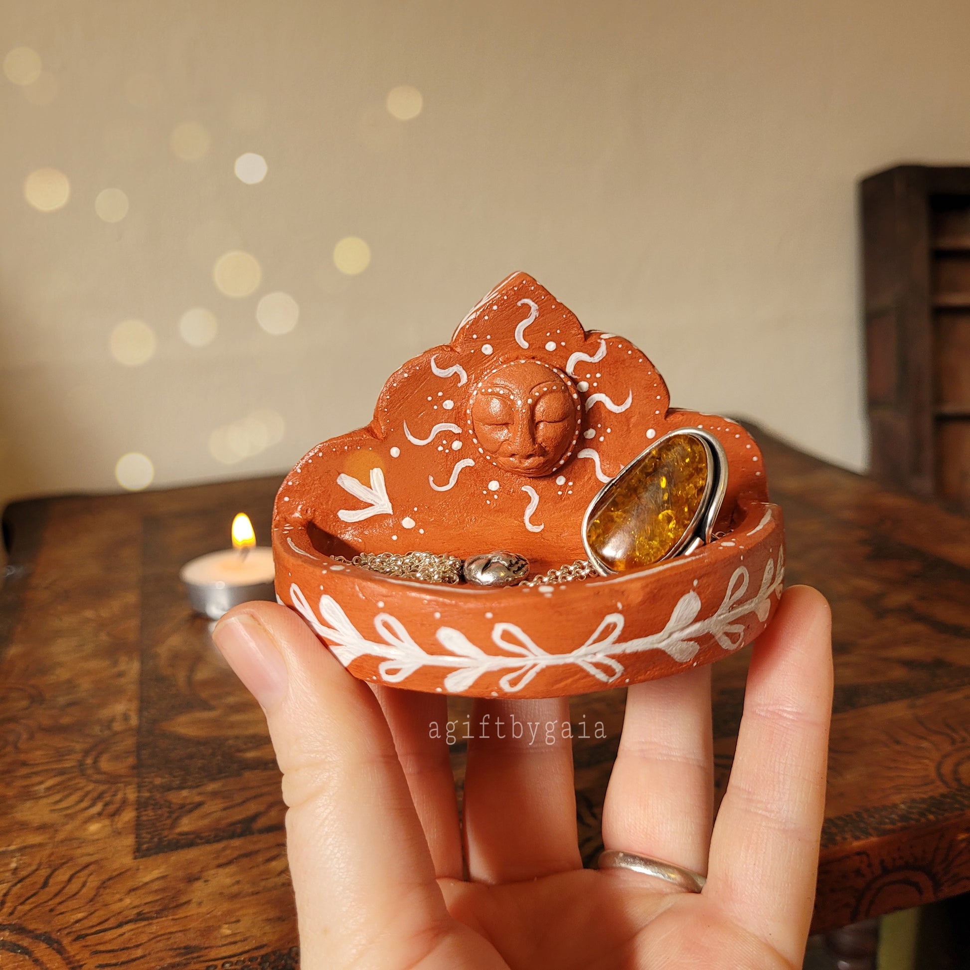 Our fresh new revival of spiritually guided home décor. The Sacred Sun Trinket dish is a hand sculpted magickal means of housing your favourite dainty talismans, herbs, crystals, jewels and rings.